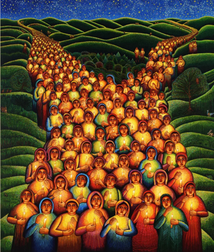 (Image: “Festival of Lights” John August Swanson, 2000, Painting Courtesy of Studio of John August Swanson)