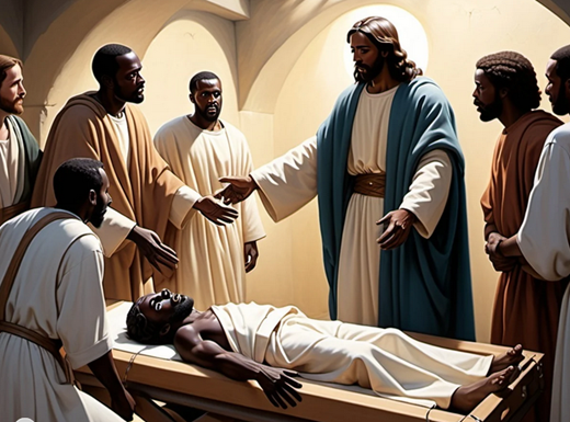 Then some people came, bringing to him a paralyzed man, carried by four of them.  And when they could not bring him to Jesus because of the crowd, they removed the roof above him; and after having dug through it, they let down the mat on which the paralytic lay.  When Jesus saw their faith, he said to the paralytic, “Son, your sins are forgiven.”