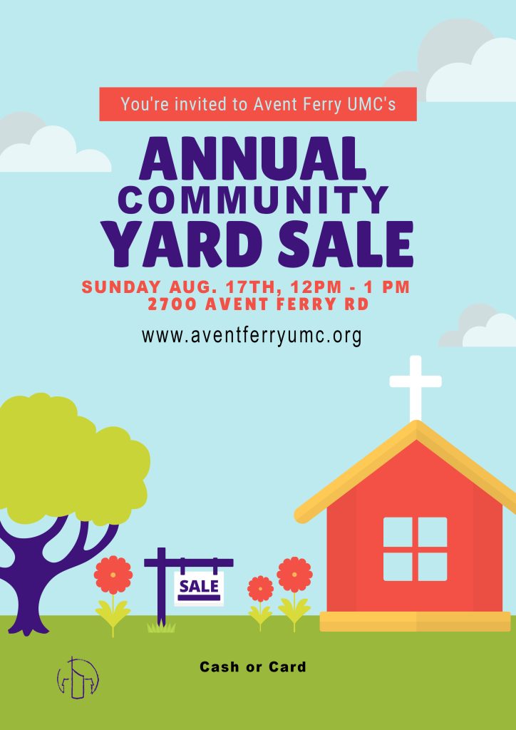 Come visit us on Saturday August 17th from 12pm until 1:00pm for our continued Annual Community Yard Sale from Saturday! Join us for Worship and 11am and then browse the yard sale directly after Worship Service.
